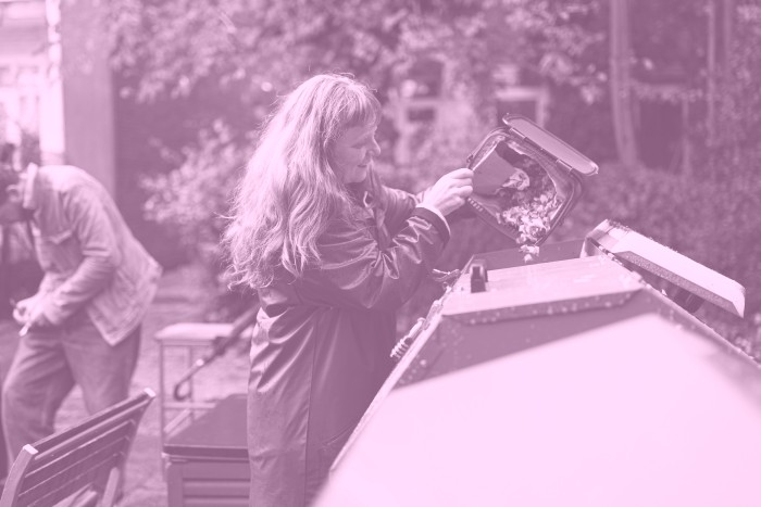 Via Afval naar Oogst kun je je groente- en fruitafval inleveren bij verschillende buurttuinen in Amsterdam. Vrijwilligers maken er ter plekke compost van, die hun tuinen voedt, zodat er weer gezonde planten uit kunnen groeien: oogst! Zo verwerken we samen, met en in de buurt, afval tot oogst.