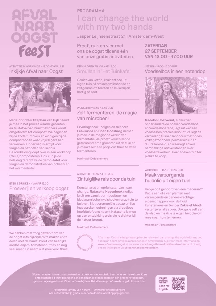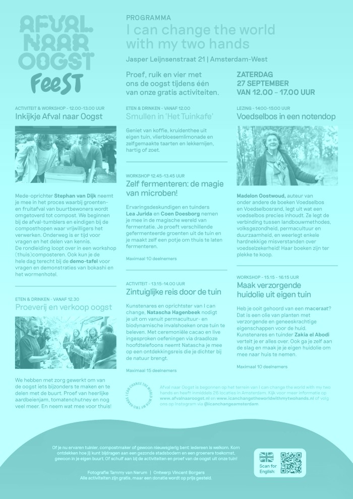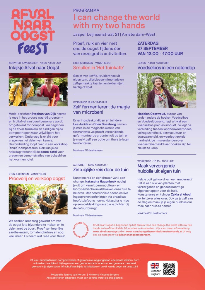Op zaterdag, 27 september vieren we samen de oogst en de magie van afval dat tot nieuw leven komt met een proeverij, workshops en activiteiten.